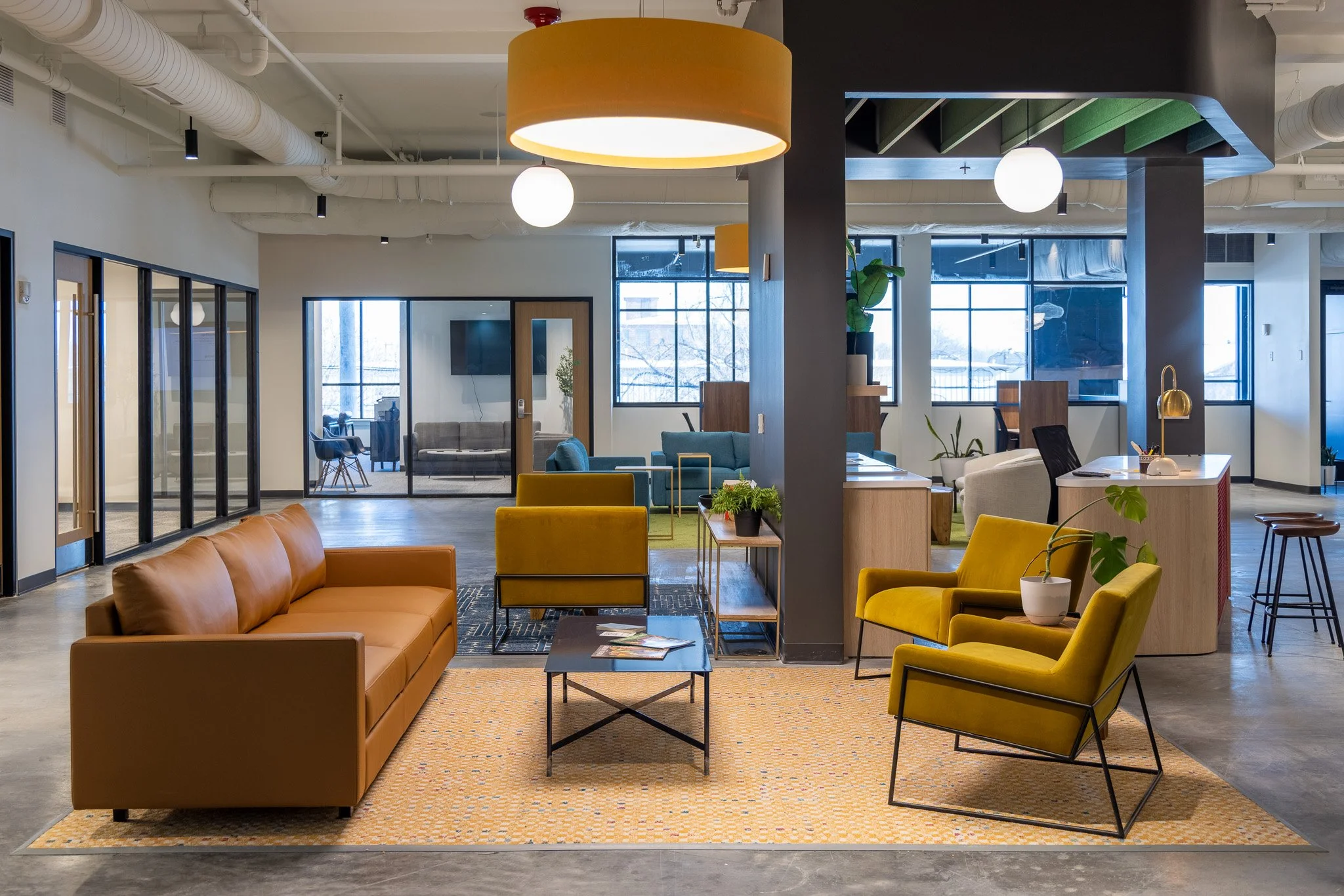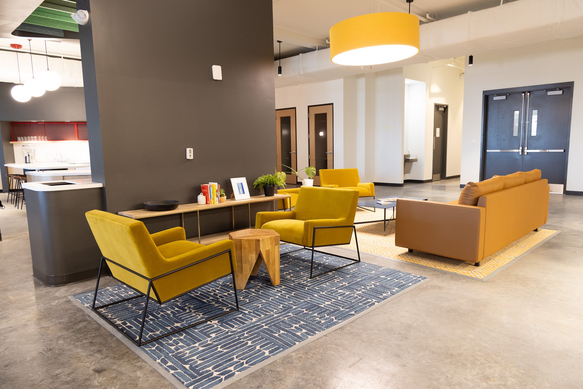 Our coworking lounge, available for after-hours happy hours, receptions, and private parties